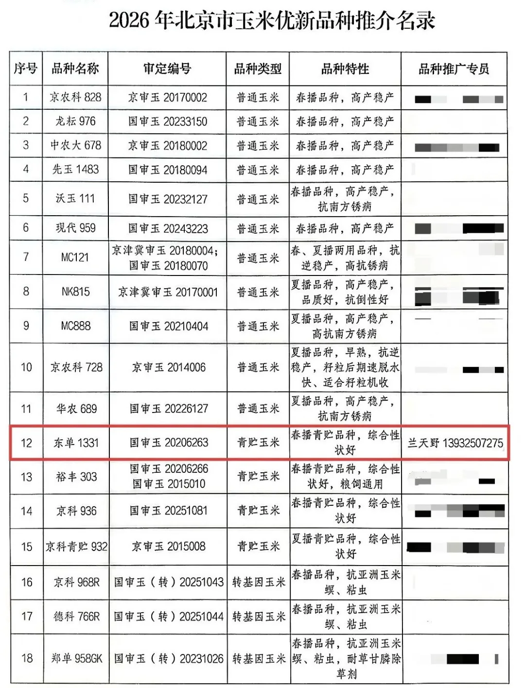 近日,北京市發(fā)布了2026年農(nóng)業(yè)主導(dǎo)品種和主推技術(shù)通知,遼寧東亞種業(yè)自主培育的東單1331入選2026年北京市優(yōu)新品種推介名錄。